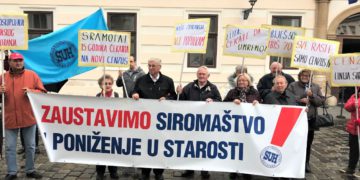 Tri četvrtka zaredom, 24. i 31. listopada te 7. studenoga 2019. godine, predstavnici Sindikata umirovljenika Hrvatske ispred zgrade Vlade RH održali su prosvjedne akcije s uručivanjem otvorenog pisma Vladi RH zahtijevajući da se promijeni prihodovni cenzus za dopunsko zdravstveno osiguranje. Podsjetimo, cenzus se nije mijenjao već 15 godina i samo unatrag godine dana desetak tisuća umirovljenika izgubilo je pravo na besplatno dopunsko zdravstveno osiguranje uslijed usklađivanja mirovina. Čim prihodi samcu premaše iznos od 1.939 kuna, ili članu domaćinstva 1.516 kuna...